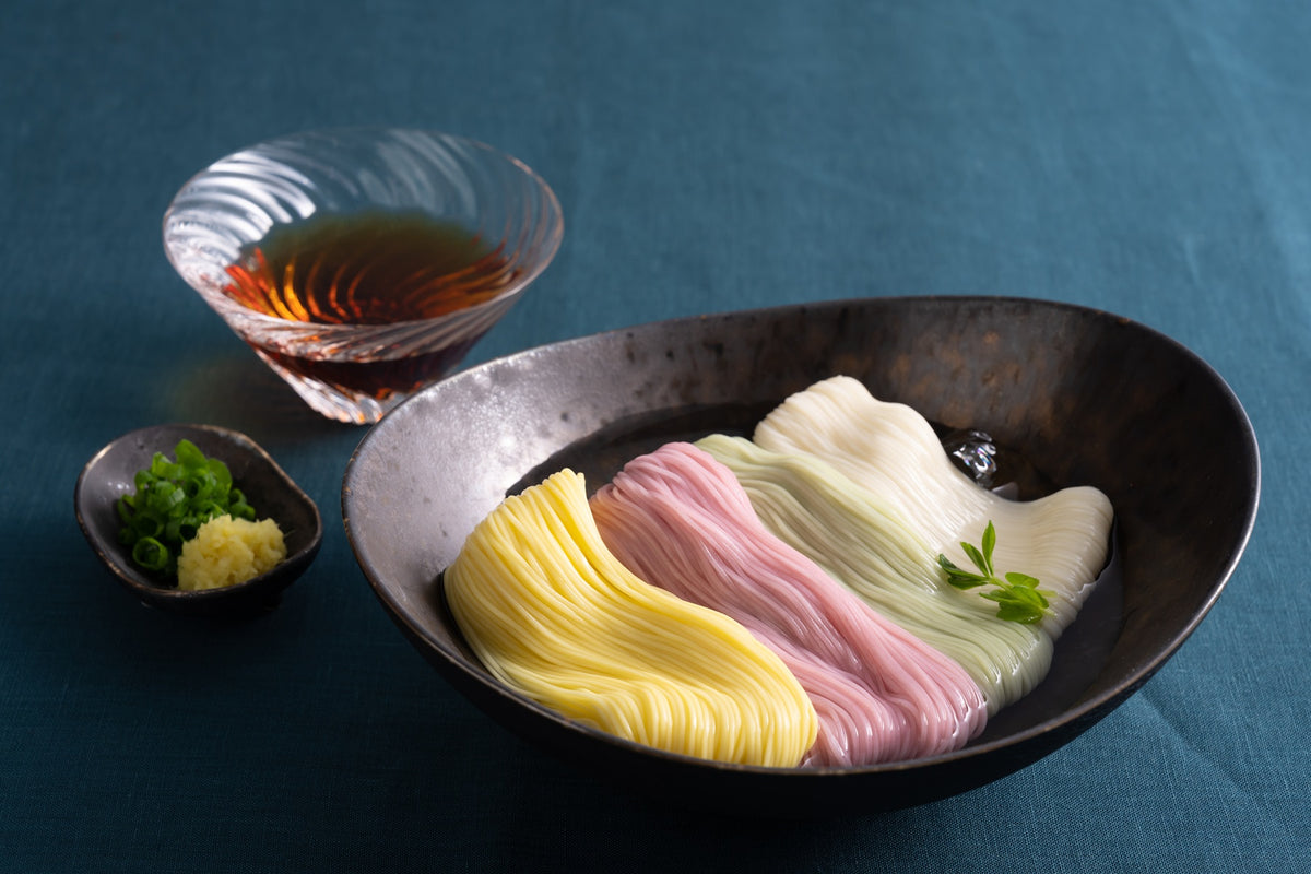 Adding perilla, pumpkin, and matcha to somen is not only delicious, but also embellishes the table with color. Ideal for gifting and personal use.