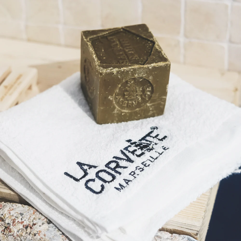 La Corvette Marseille soap is made using the traditional kettle-cooking method. It adheres to strict standards dating back over 300 years, including the requirement to contain at least "72%" natural plant oils.