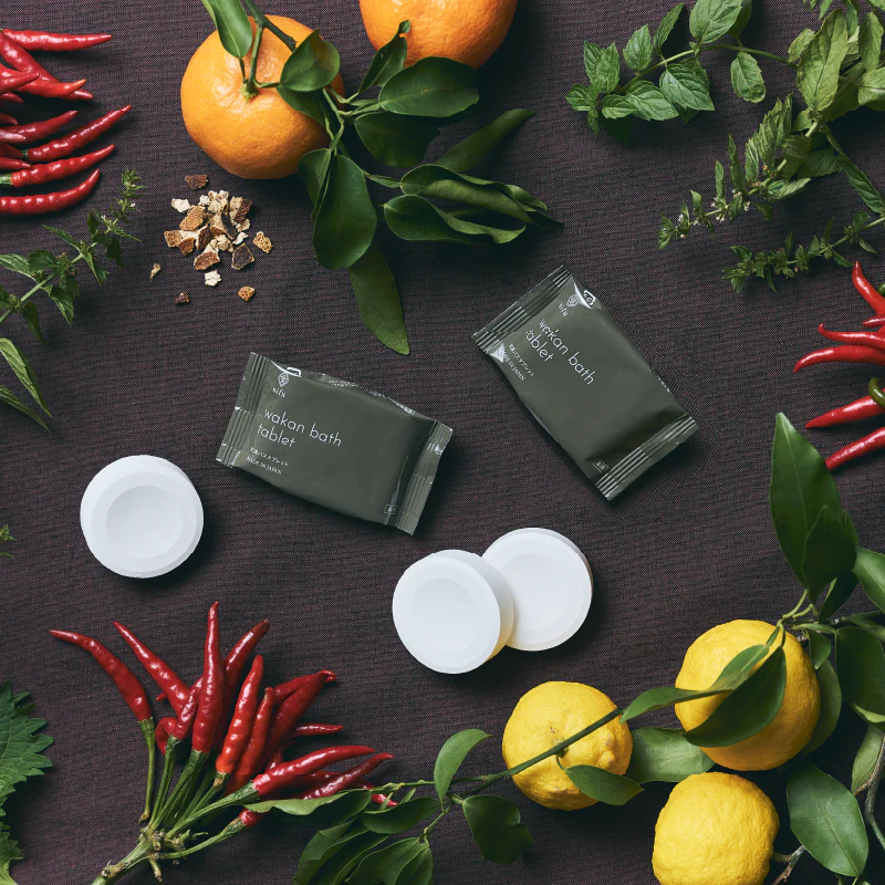This medicated bath additive tablet contains six Japanese and Chinese herbal extracts¹ and three active ingredients².