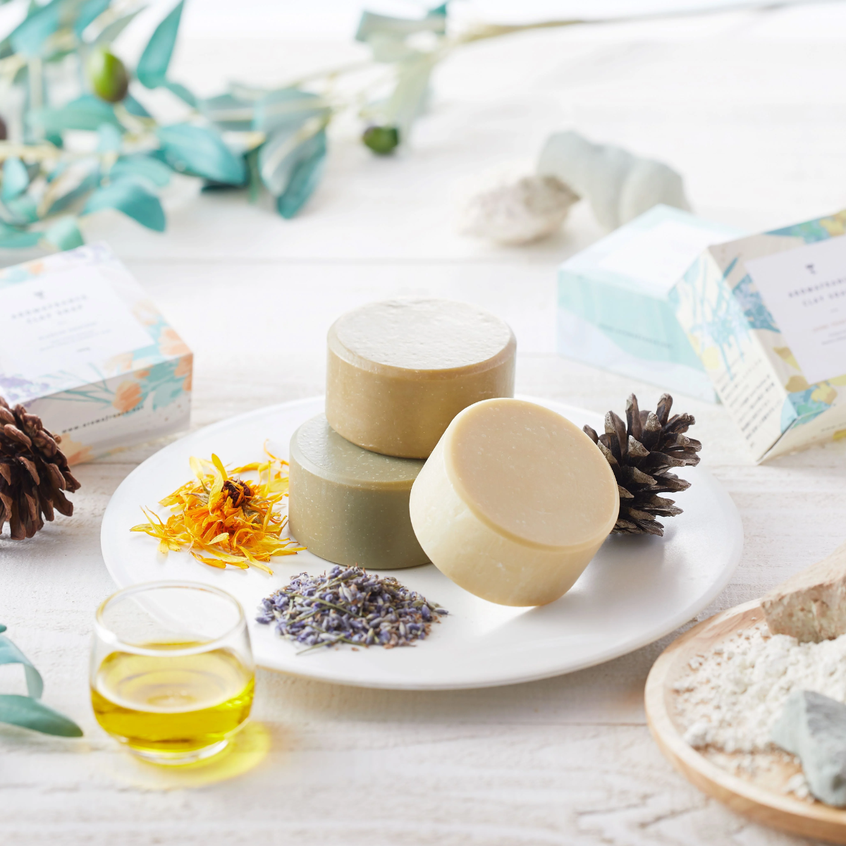 Formulado con arcilla verde illita y aceite de oliva virgen extra, este jabón simple pero efectivo limpia profundamente mientras mantiene el equilibrio de hidratación natural de la piel.