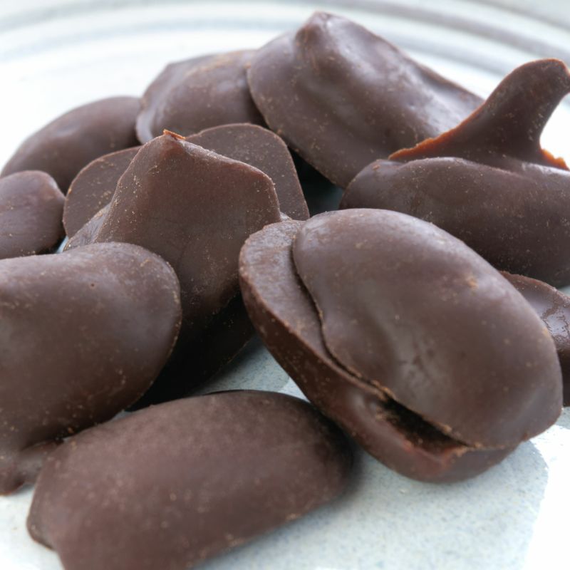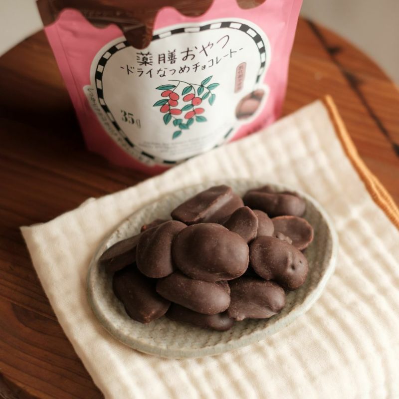 Our "Herbal Snack Dried Jujube" is fried at low temperature for a crispy texture and coated in 60% cacao vegan chocolate.
