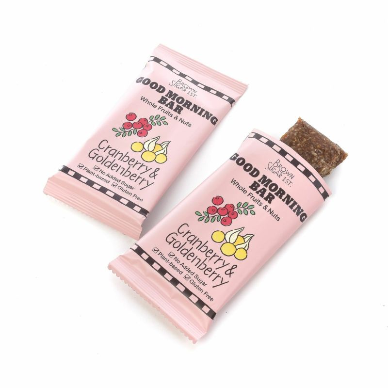 Esta barra contiene bayas doradas, un toque único al sabor habitual de las bayas.