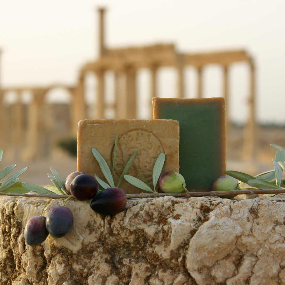 La Syrie est riche en calcaire et possède un sol alcalin, idéal pour la culture de l'olivier. L'air humide de la mer Méditerranée rencontre l'air sec du désert oriental, ce qui rend les olives moins sensibles aux parasites et permet une production d'olives de haute qualité. Cette huile, issue de la seconde pression de l'huile utilisée pour l'extraction de l'huile alimentaire, contient deux fois plus de squalène, un oligo-élément, que l'huile alimentaire, pour une hydratation optimale de la peau.