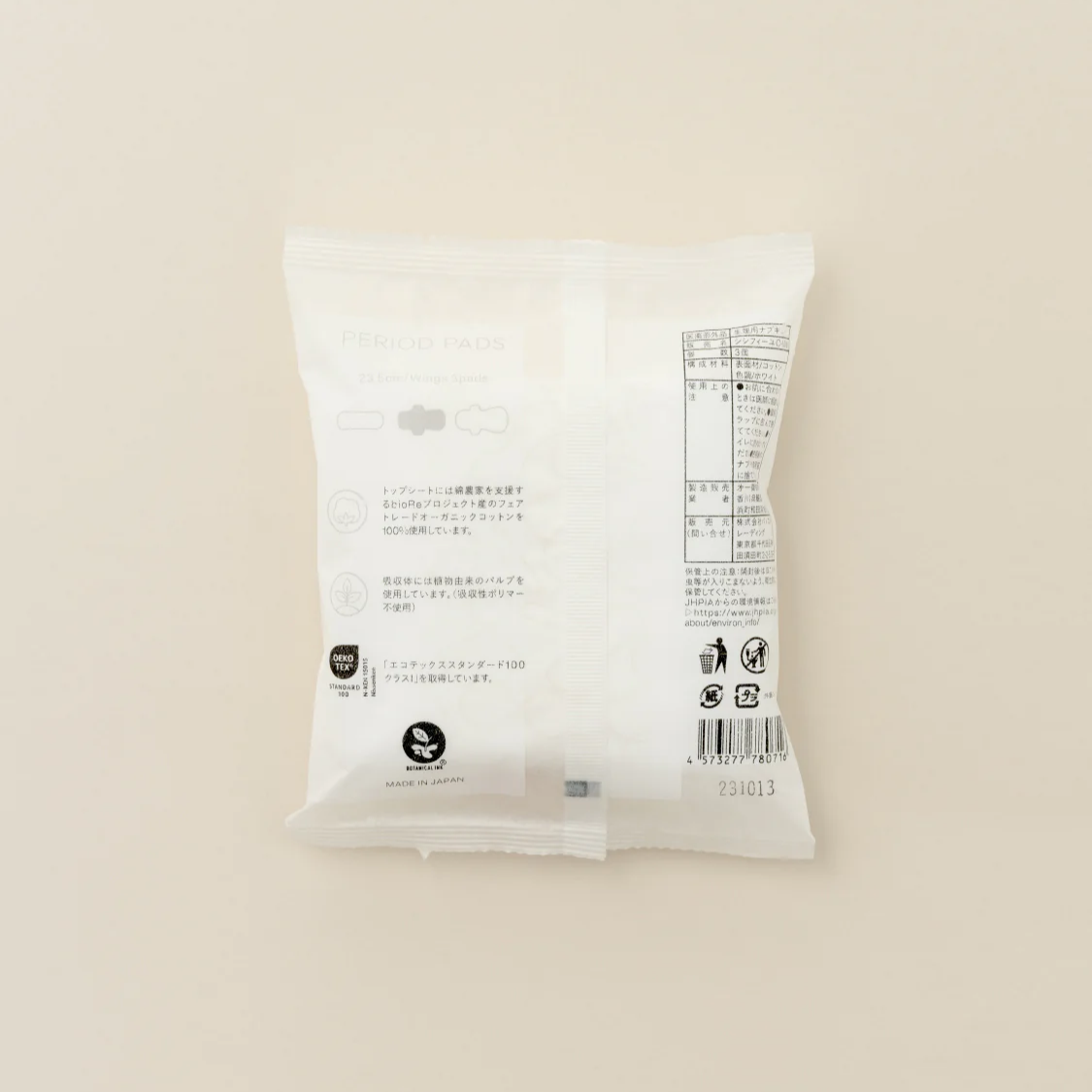 Organic cotton sanitary napkins, 23.5cm, with wings.