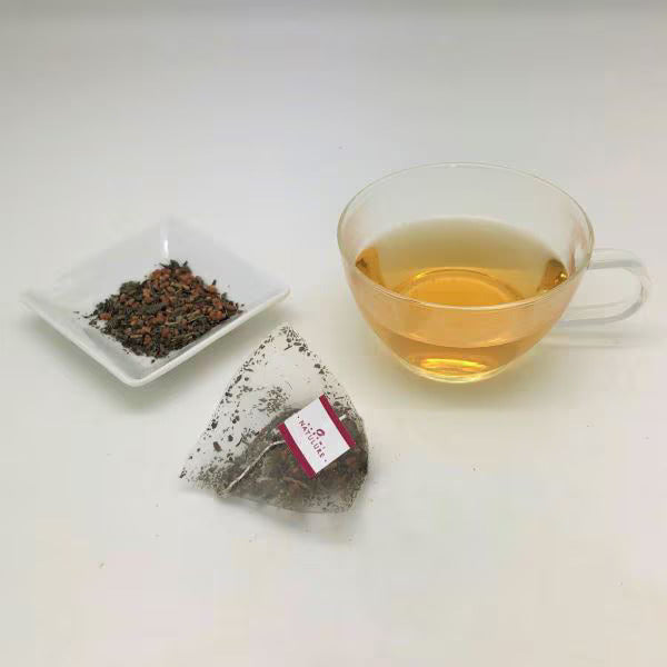 Il s'agit d'un thé de riz brun décaféiné (genmaicha) qui est un mélange de riz brun biologique domestique extrêmement rare et de thé vert de la préfecture de Shizuoka.