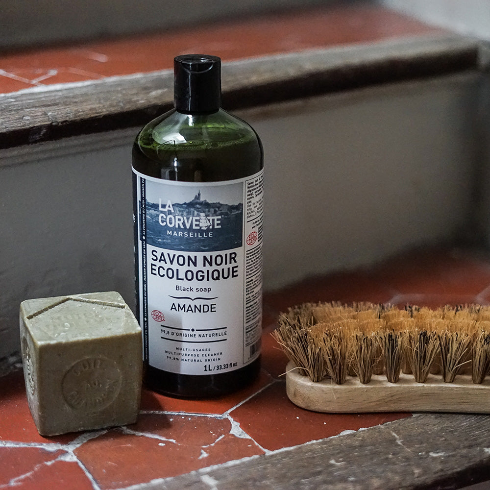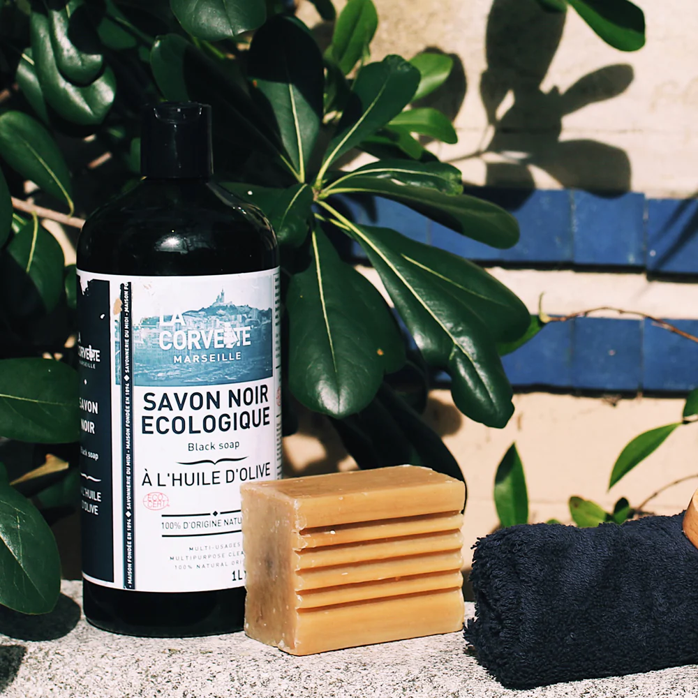 Savon Noir, known as black soap, is a household cleaner cherished in France for centuries. Its primary ingredient is olive oil sourced from organic farming.